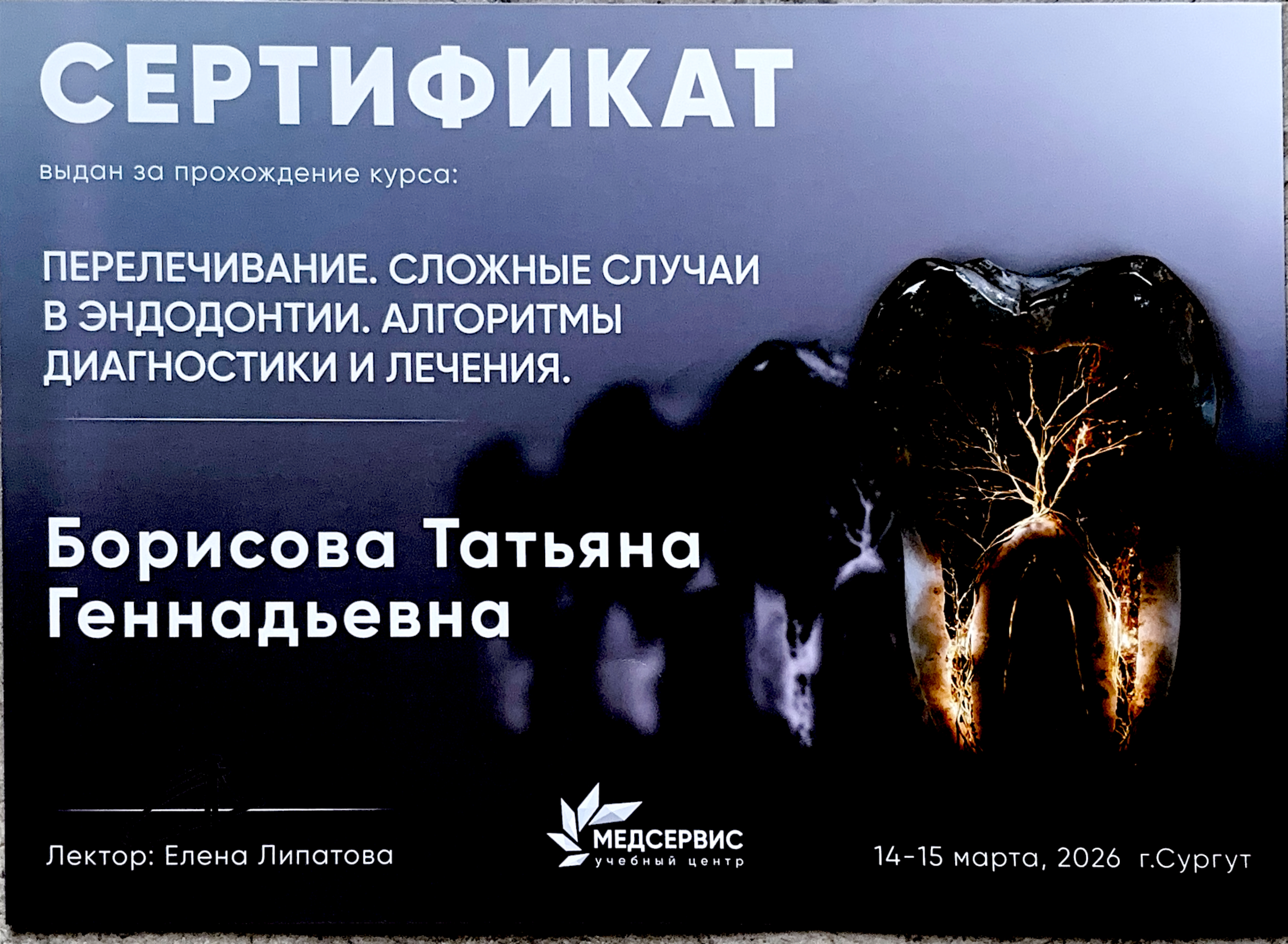 Выпускница Омской Государственной Медицинской Академии (г. Омск 2008г.). В 2009 году закончила клиническую интернатуру по специальности «стоматология общей практики». В 2012 году успешно прошла специализацию по терапевтической стоматологии на базе Омской Медицинской Академии.