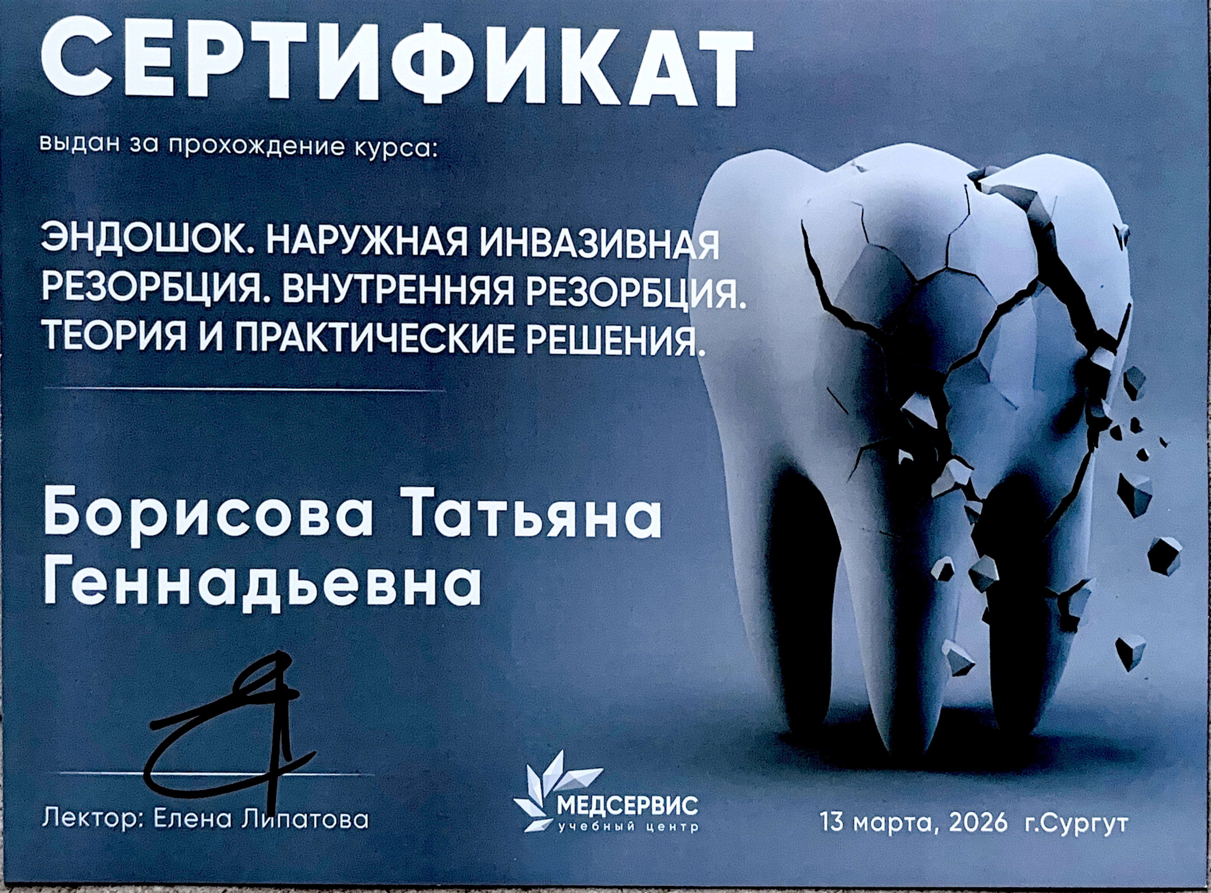 Выпускница Омской Государственной Медицинской Академии (г. Омск 2008г.). В 2009 году закончила клиническую интернатуру по специальности «стоматология общей практики». В 2012 году успешно прошла специализацию по терапевтической стоматологии на базе Омской Медицинской Академии.