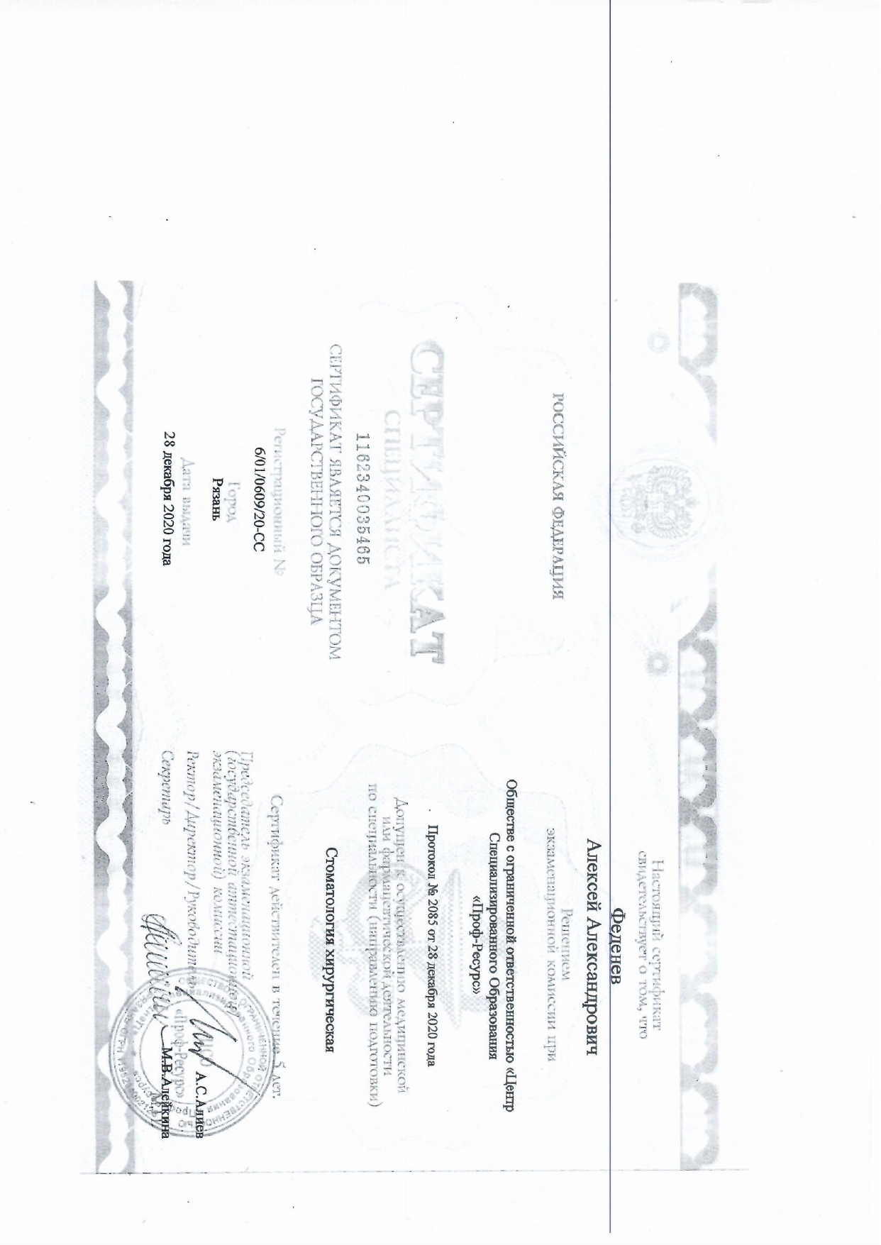 С 2006 по 2007 гг . прошел клиническую интернатуру на базе Областной стоматологической поликлинике г.Тюмень по специальности «Стоматология общей практики». В 2007 г. Прошел успешное обучение на базе Военно-медицинской академии в г.Санкт-Петербург и получил сертификат по специальности «Стоматология ортопедическая».