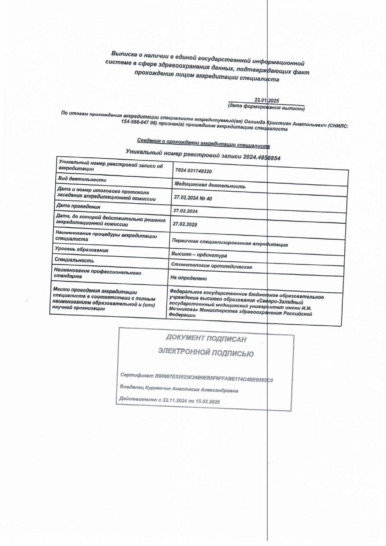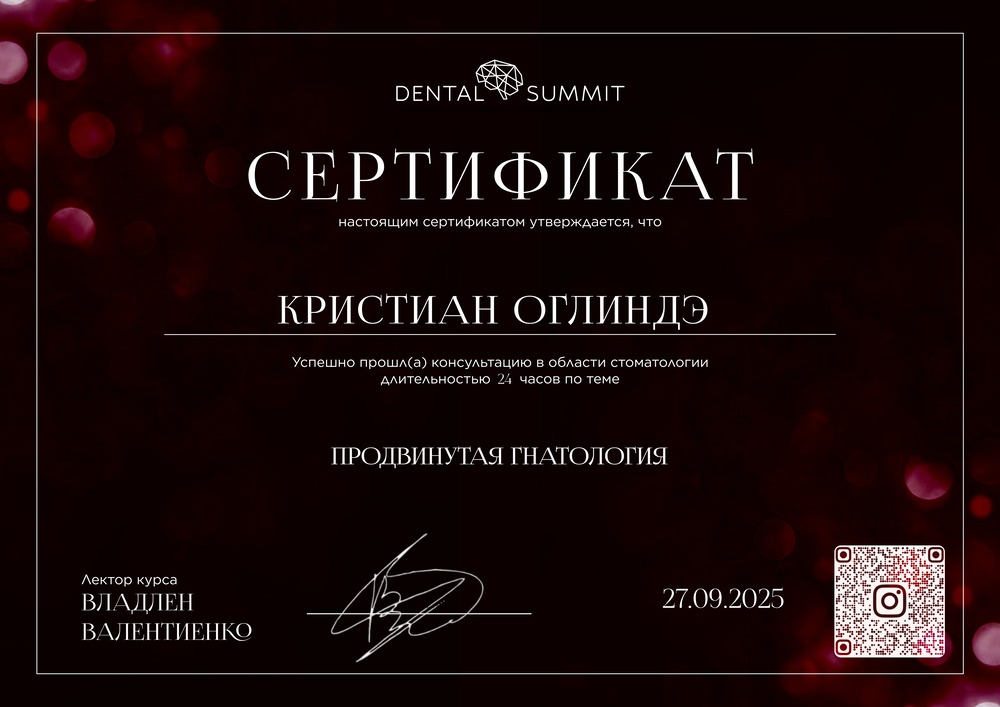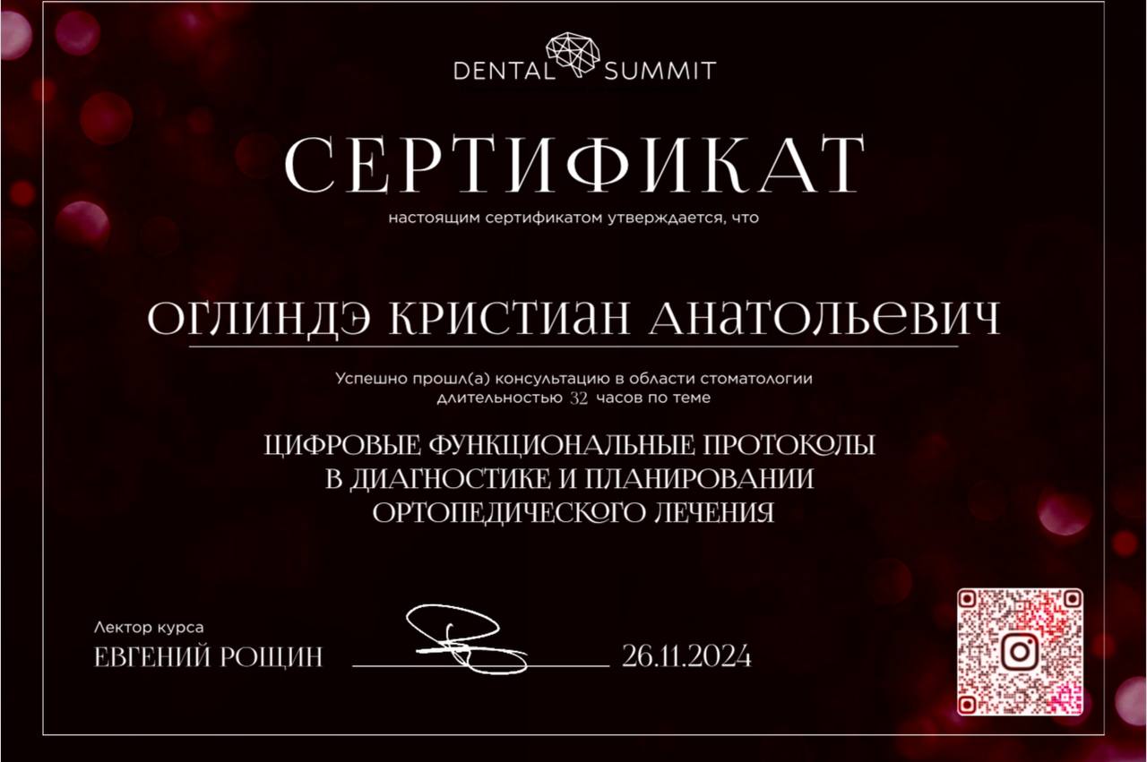 В 2021 году закончил резидентуру (ординатуру) по специальности «Ортопедическая стоматология" при Государственном университете медицины и фармации имени Николая Тестемицану.